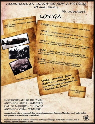 Realizou-se hoje 01 \ 05 \ 2014 uma caminhada a Malhada do Mato Amieiro, junto Fraga do Al cabreiro. Uma Homenagem com celebração da Santa Eucaristia presidida por sua Rev. Sr. Padre João a onde caiu o avião em Loriga a 22 \ 02 \ 1944 um Lockheed - Hudson VI – EW906 SQN da RAF .
